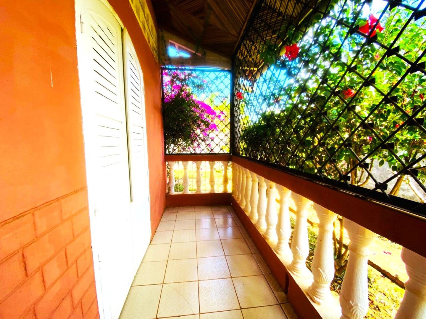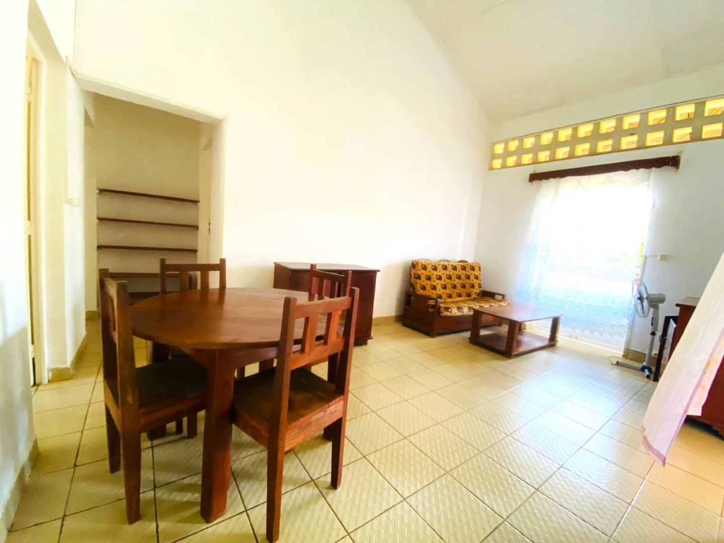 À louer : charmante maison meublée avec joli jardin clôturé, idéalement située en bordure de route goudronnée, offrant un accès facile et un cadre de vie agréable.