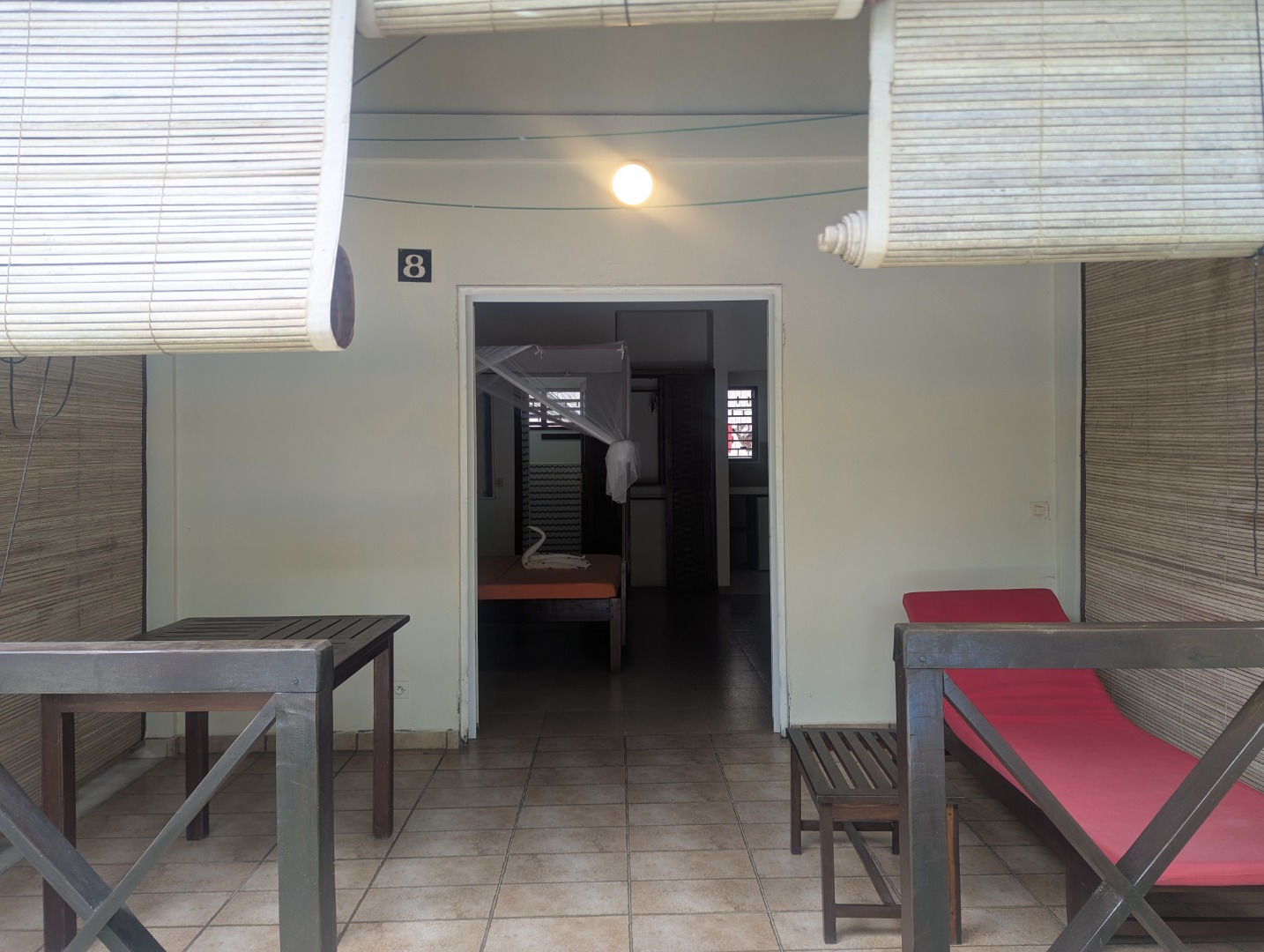 • Chambres : 1 chambre climatisée, ventilée, avec placard, salle de bain, mini-réfrigérateur et petite terrasse (superficie légèrement inférieure aux studios)
