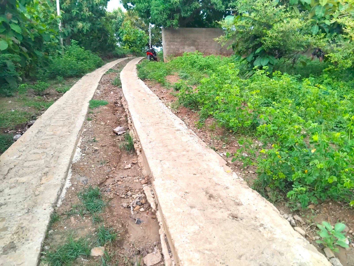 -Route en cours de goudronnage par l’État, pavée déjà partiellement