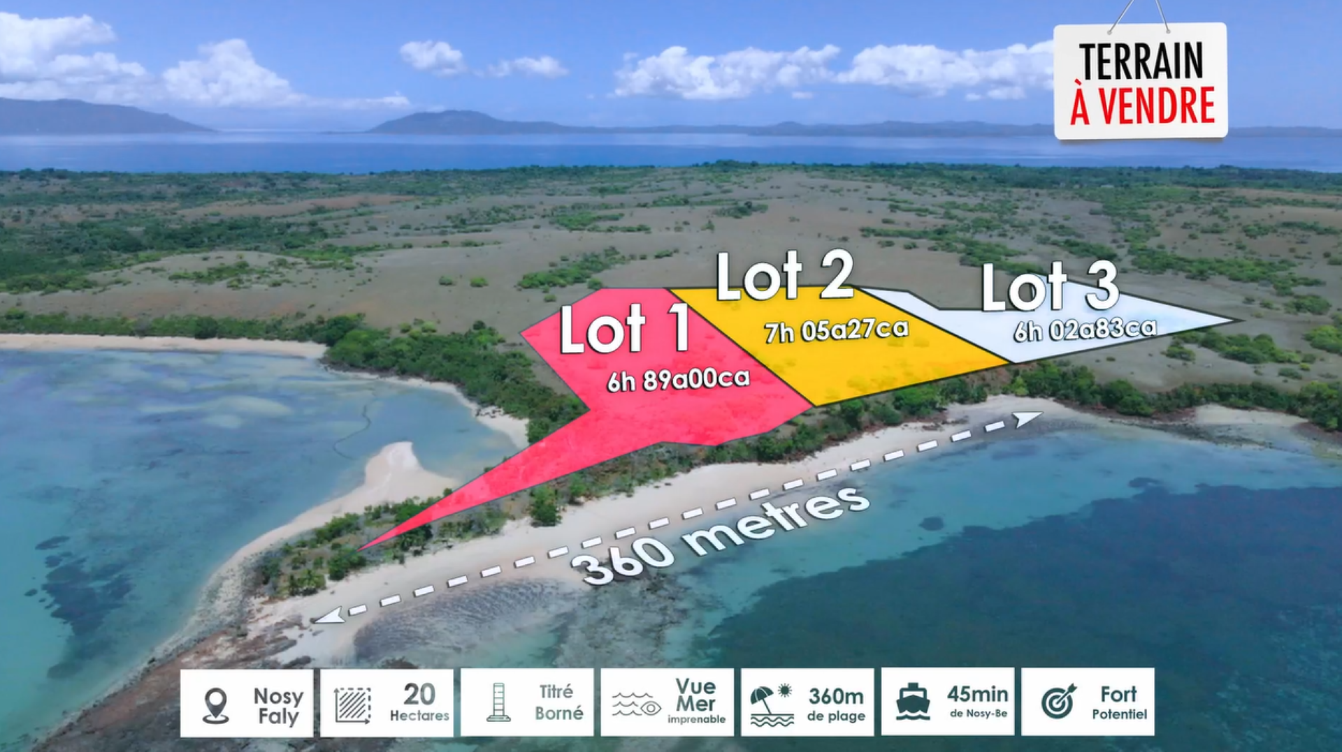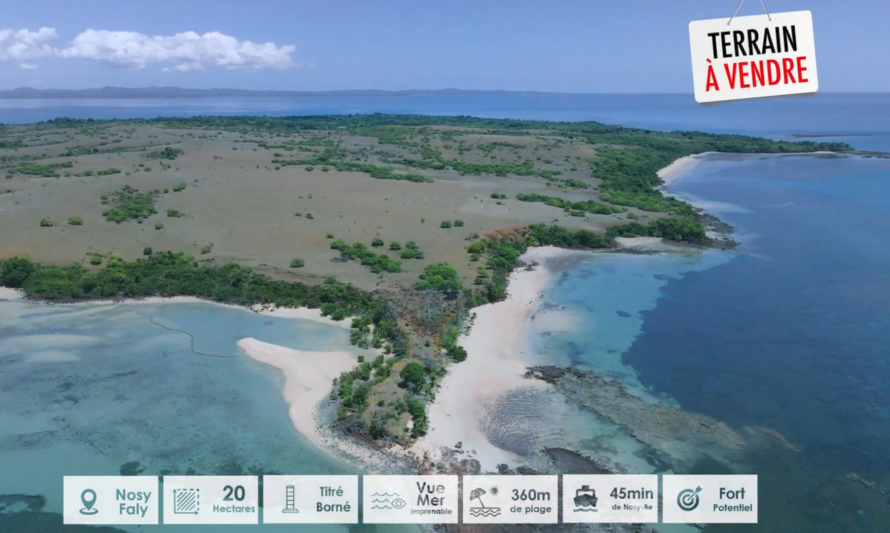 Le terrain est situé à moins d’une heure de bateau de l’aéroport de Fascène Nosy-Be.
