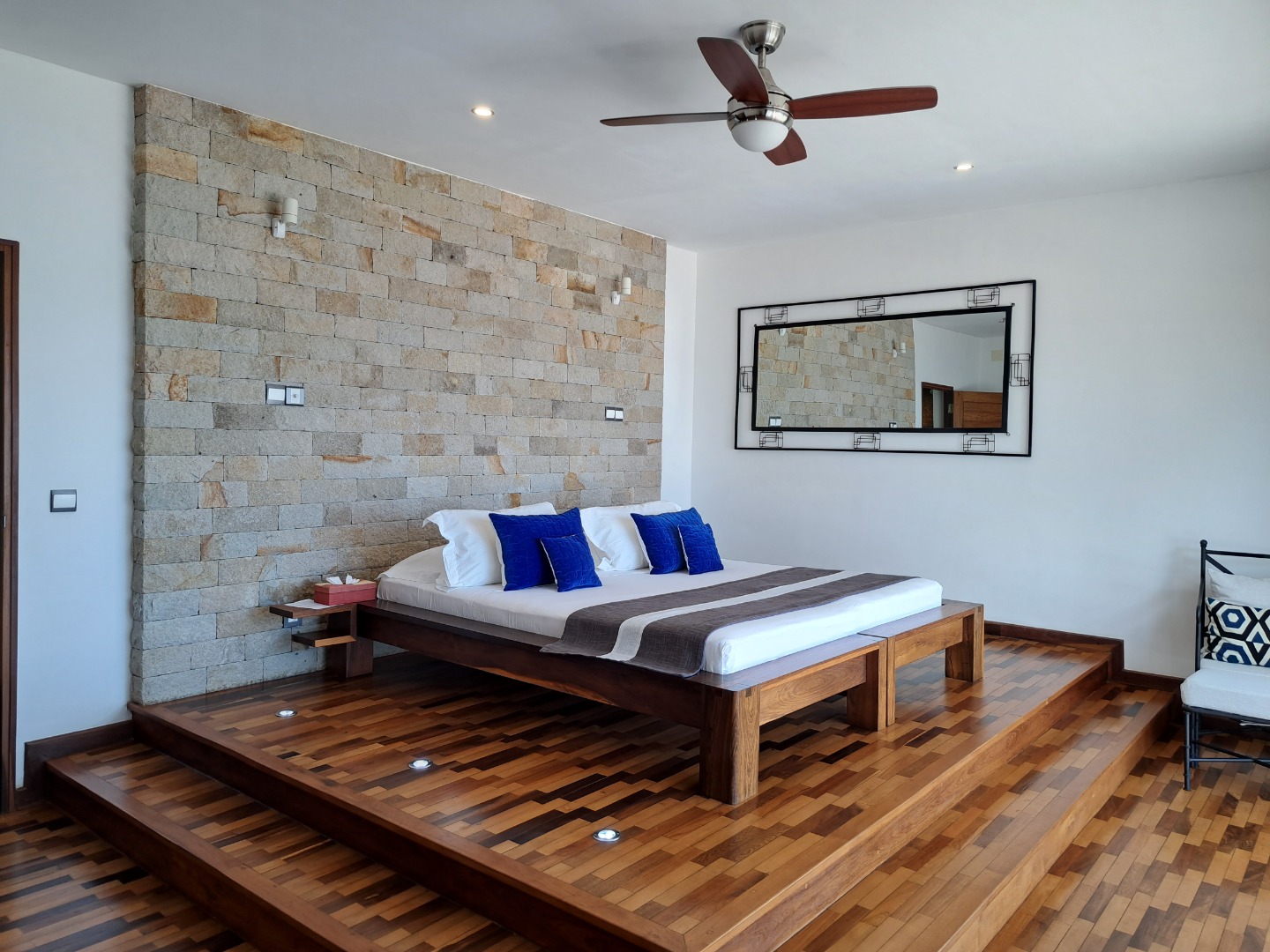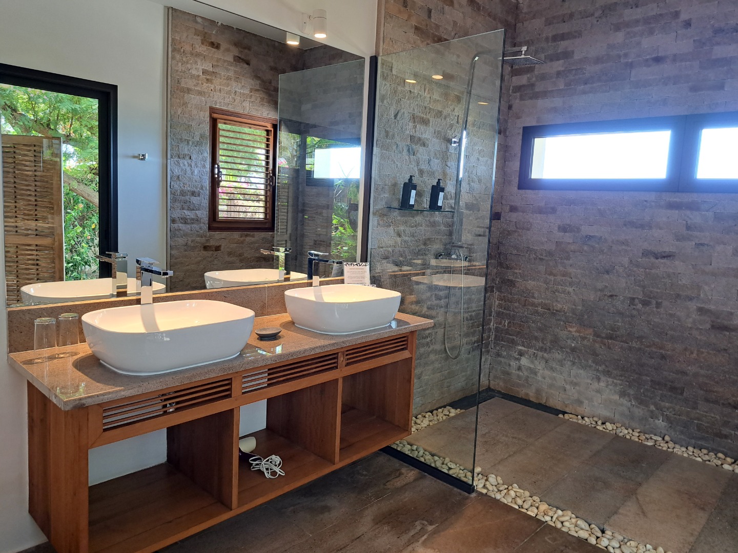 - 2 chambres climatisées, ventilées, placardées, avec chacune sa salle de bains privative.