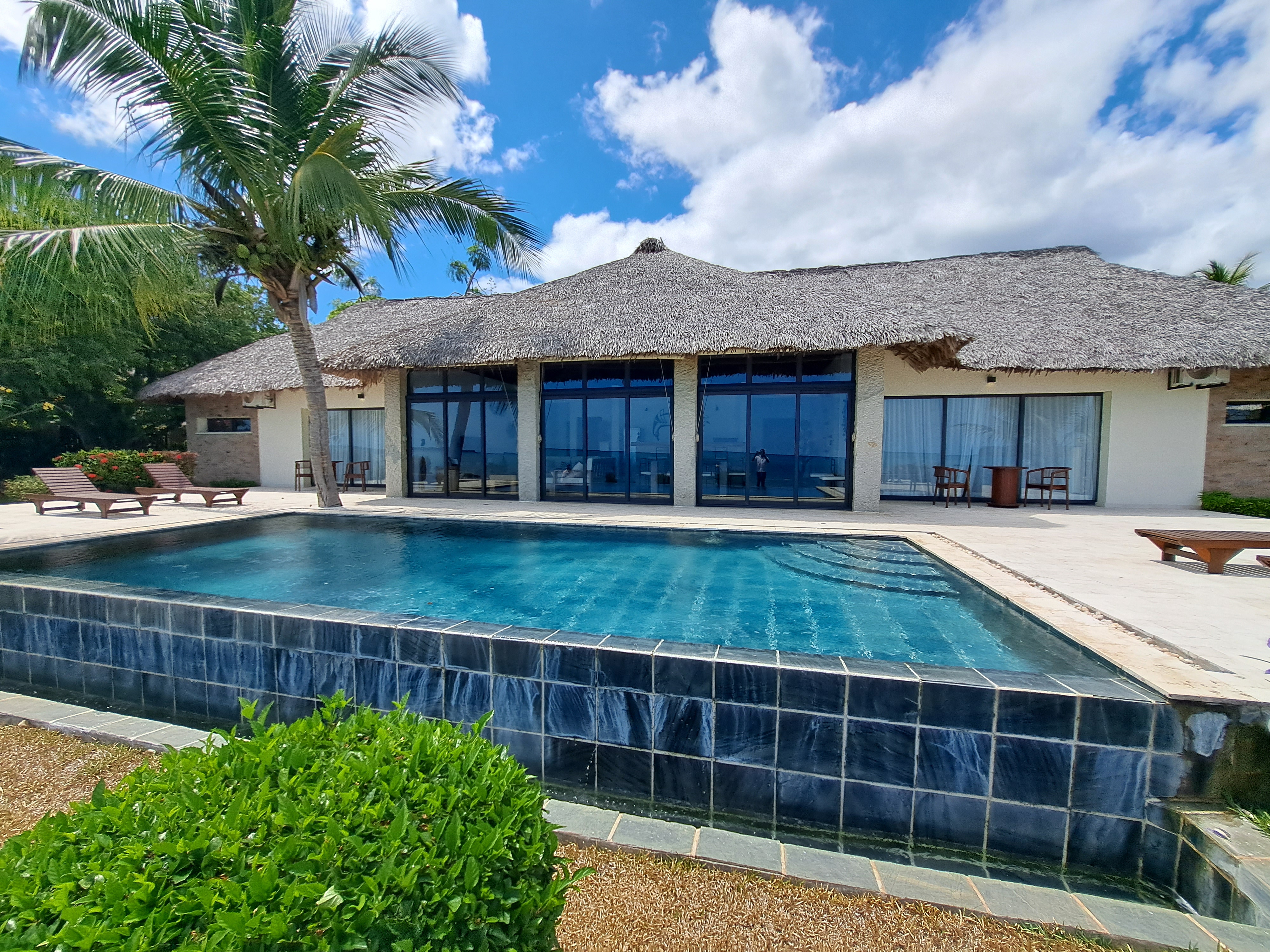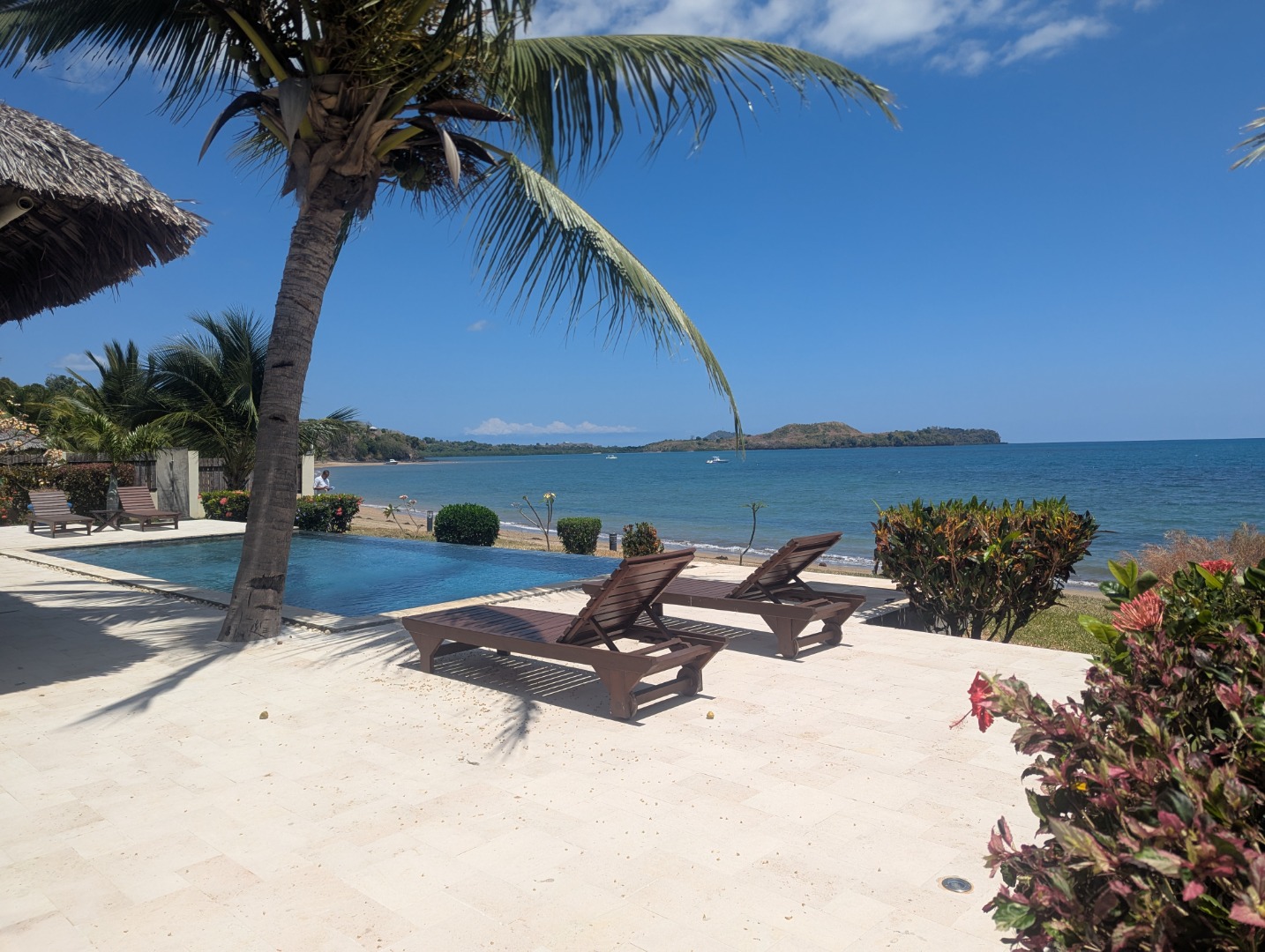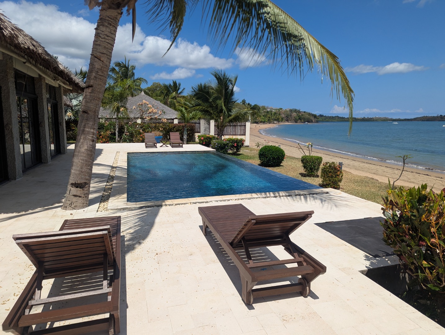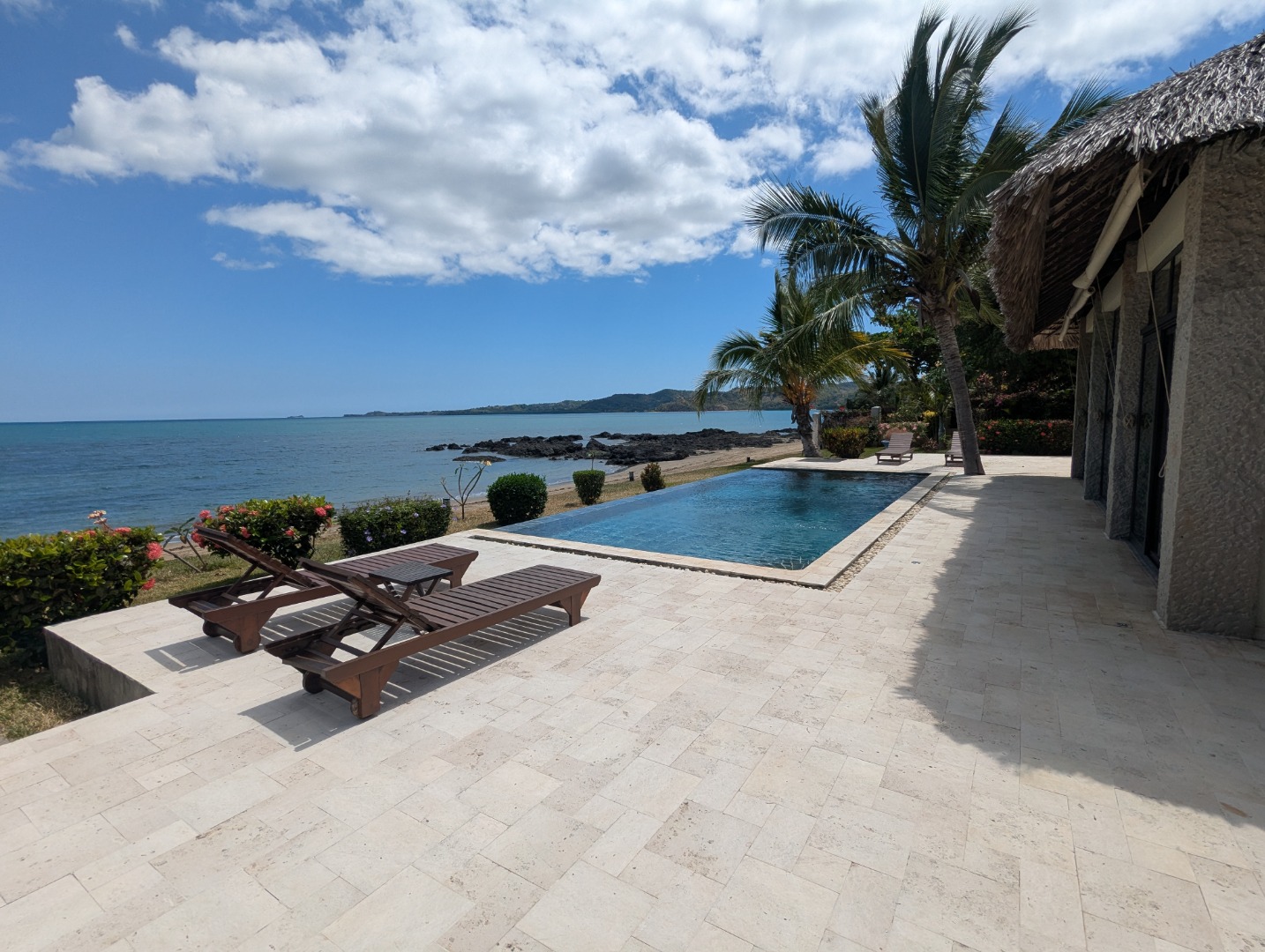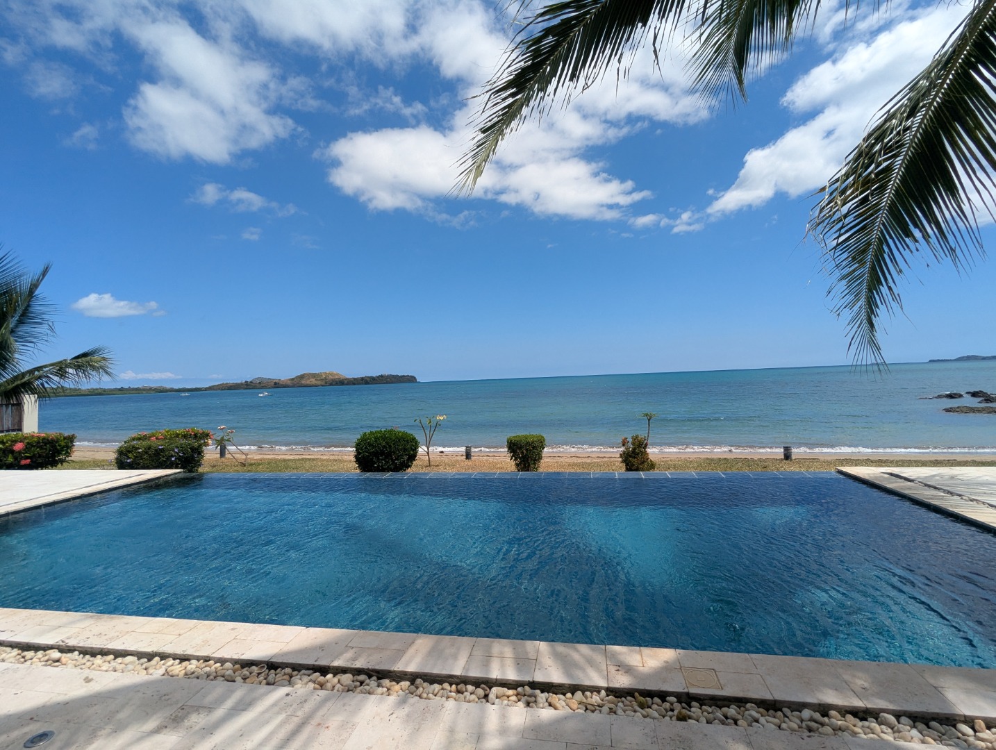 Piscine à débordement directement devant la plage.